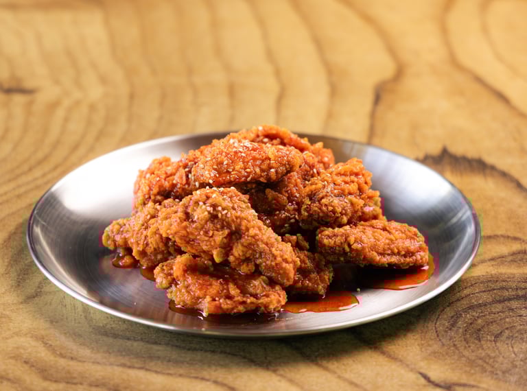 Crispy fried chicken wings coated in a sweet and spicy Korean Sauce.